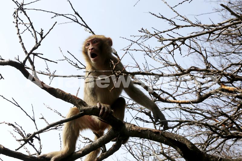 2023年2月13日,在江苏省连云港市花果山上的猕猴。