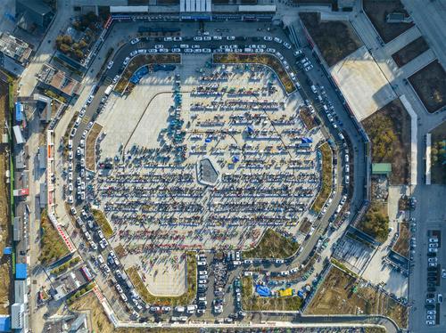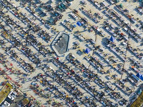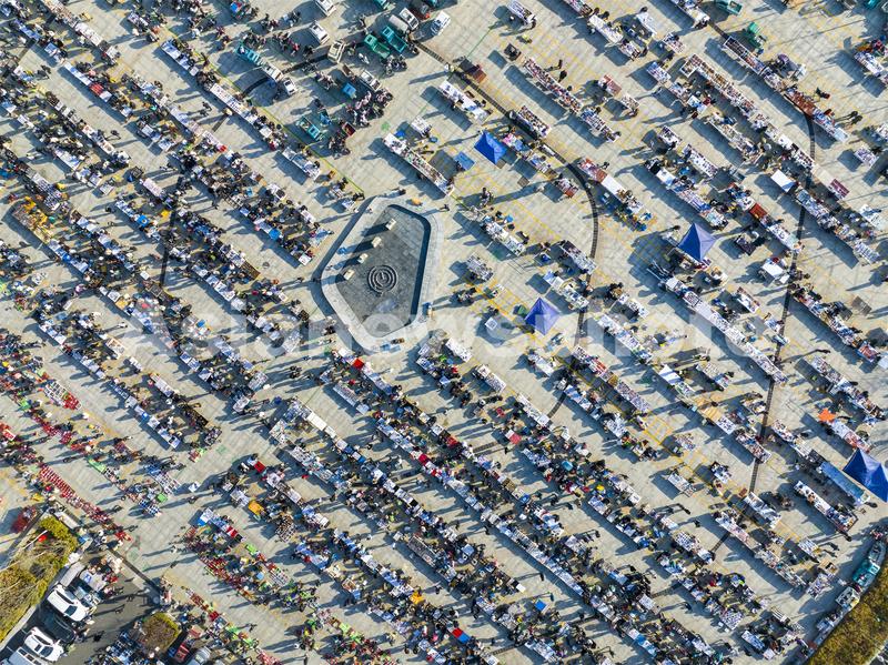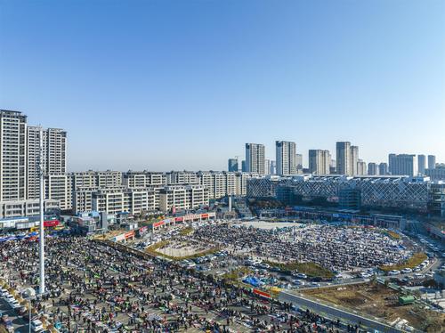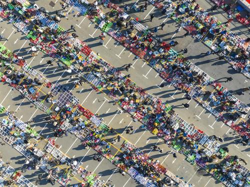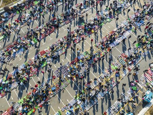 图片说明:2023年2月14日,江苏省连云港市东海县水晶城淘晶广场,水晶大集热闹非凡,人潮涌动。(航拍)