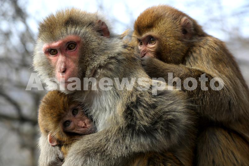 2023年2月13日,在江苏省连云港市花果山上的猕猴。