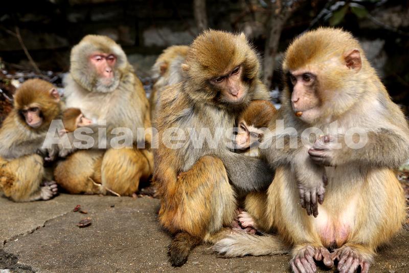 2023年2月13日,在江苏省连云港市花果山上的猕猴。