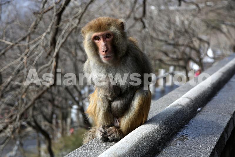 2023年2月13日,在江苏省连云港市花果山上的猕猴。