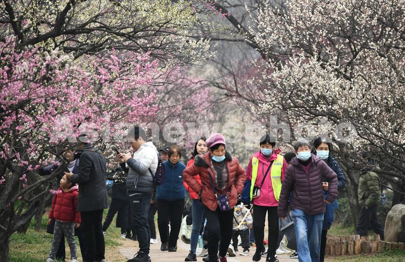 2023年2月18日,游客在南京梅花山赏花游玩。