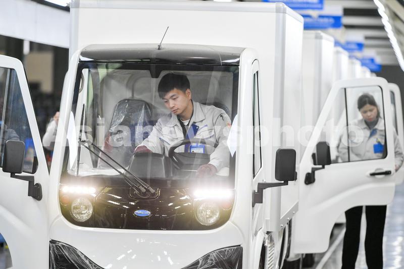 图片说明:2022年2月23日,位于浙江省湖州市长兴经济技术开发区的浙江恒源机器有限公司,技术人员忙碌组装能源纯电动物流车SKD驾驶室。