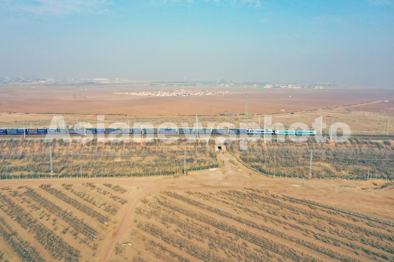 2023年2月27日,一列满载5000吨货物的列车在SS4G型电力机车的牵引下行驶在内蒙古乌兰察布市贲红镇境内集通铁路上。