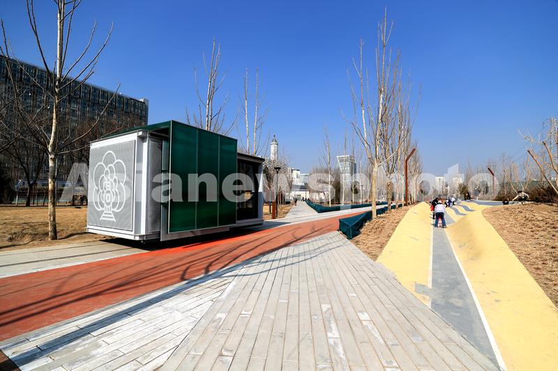 2023年2月26日,今年初,京张铁路遗址公园一期C区开放试运行。据介绍,京张铁路遗址公园全长9公里,南起北京北站,北至北五环,纵贯海淀,此次试运行的一期C区位于北四环保福寺桥以南,长约1公里,面积约11.8公顷。园区内不仅绿地围绕,还新建了足球场、篮球场等体育设施,让市民“可看”“可用”“可玩”。为突出铁路元素,公园还利用沿线旧铁轨、道岔、机车等,设置火车声响互动装置、火车转盘景观,传承与展示铁路文化,彰显铁路文化特色。漫步公园,随处可见的科技元素更突显了海淀科创特色:可在铁轨上移动、自由组合的“移动盒子”;互动喷泉、智慧健身设施、智慧管理平台;补充公园配套服务,为周边科创企业提供展览展示平台。