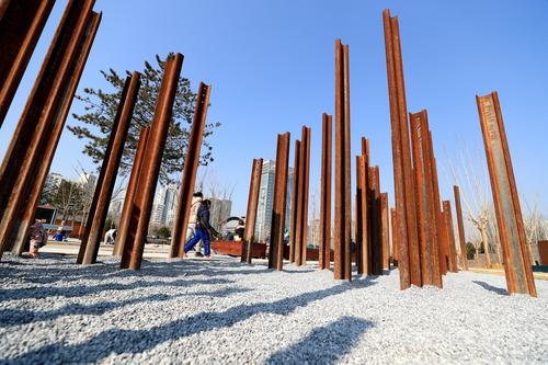 2023年2月26日,京张铁路遗址公园一期C区开放试运行,铁路元素随处可见。