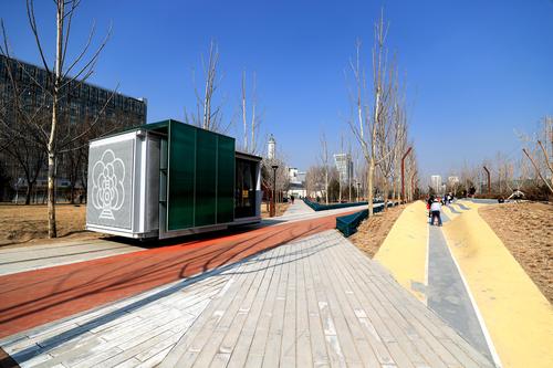 2023年2月26日,今年初,京张铁路遗址公园一期C区开放试运行。据介绍,京张铁路遗址公园全长9公里,南起北京北站,北至北五环,纵贯海淀,此次试运行的一期C区位于北四环保福寺桥以南,长约1公里,面积约11.8公顷。园区内不仅绿地围绕,还新建了足球场、篮球场等体育设施,让市民“可看”“可用”“可玩”。为突出铁路元素,公园还利用沿线旧铁轨、道岔、机车等,设置火车声响互动装置、火车转盘景观,传承与展示铁路文化,彰显铁路文化特色。漫步公园,随处可见的科技元素更突显了海淀科创特色:可在铁轨上移动、自由组合的“移动盒子”;互动喷泉、智慧健身设施、智慧管理平台;补充公园配套服务,为周边科创企业提供展览展示平台。