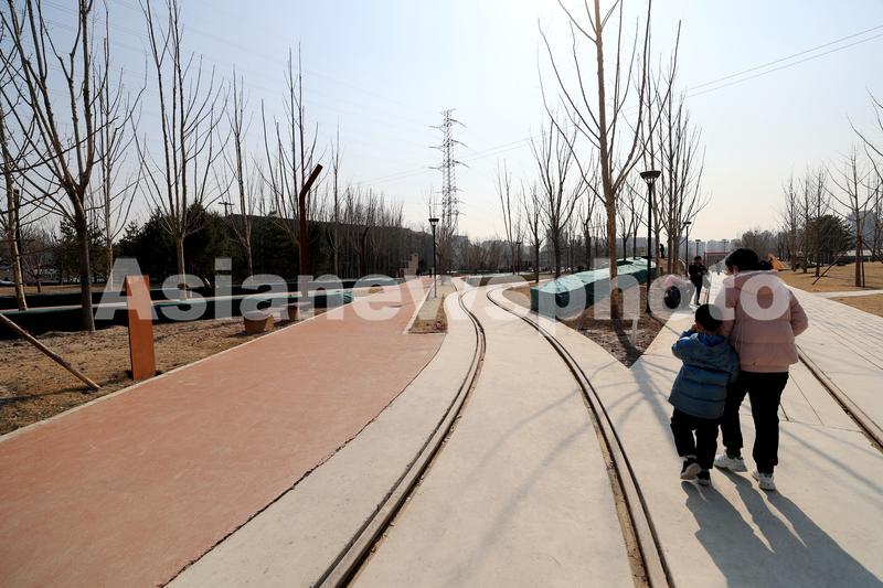2023年2月26日,京张铁路遗址公园一期C区开放试运行,铁路元素随处可见。