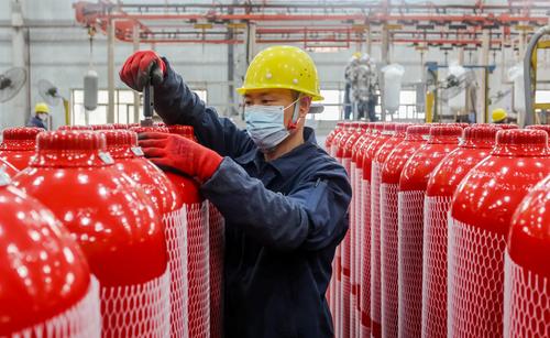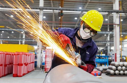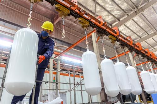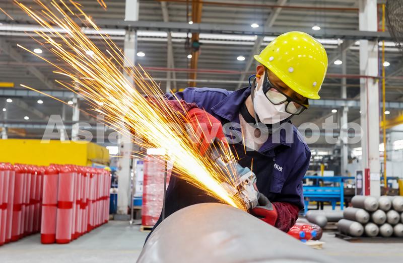 图片说明:2023年3月1日,工人正在对产品外壁进行打磨。