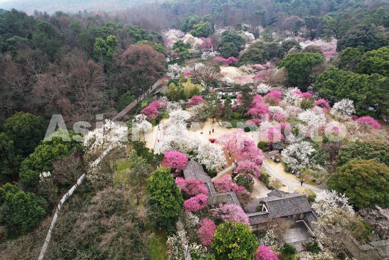 图片说明:2023年3月1日,杭州植物园内的各色梅花已进入盛花期,市民和游客团队纷至沓来,徜徉梅园,感受早春气息。