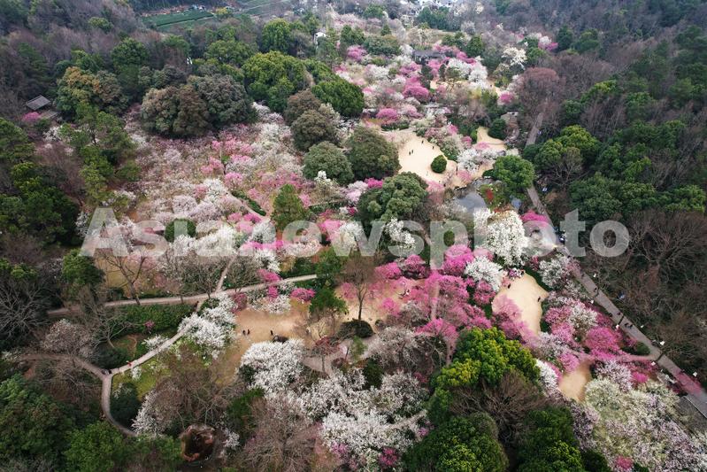 图片说明:2023年3月1日,杭州植物园内的各色梅花已进入盛花期,市民和游客团队纷至沓来,徜徉梅园,感受早春气息。