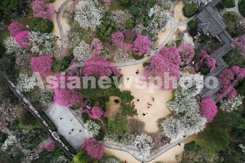 图片说明:2023年3月1日,杭州植物园内的各色梅花已进入盛花期,市民和游客团队纷至沓来,徜徉梅园,感受早春气息。