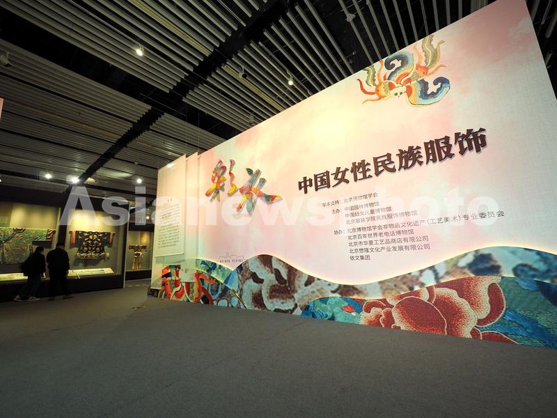 图片说明:2023年3月7日,观众在中国园林博物馆参观“彩衣——中国女性民族服饰”展。