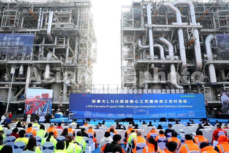 图片说明:3月7日,全球首例一体化建造LNG模块化工厂在青岛西海岸新区完工交付。