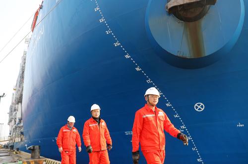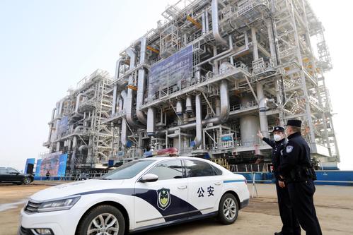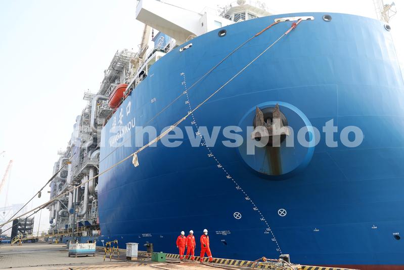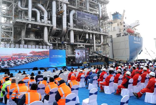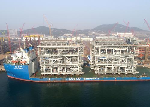 图片说明:3月7日,全球首例一体化建造LNG模块化工厂在青岛西海岸新区完工交付。