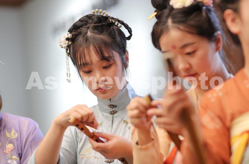 图片说明:2023年3月7日,游客在贵州省玉屏侗族自治县侗乡民族风情园景区体验箫笛制作。