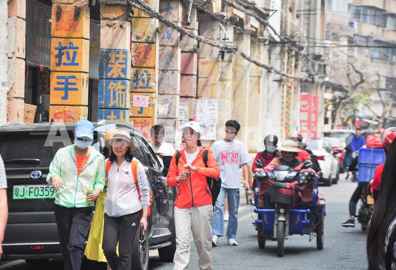 2023年3月4日,广东省江门市长堤历史文化街区,拍摄到游客在《狂飙》取景点游玩。