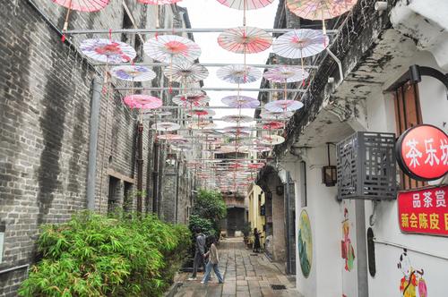 近日,电视剧《狂飙》热播,其取景地广东省江门市的长堤历史文化街区也因此“火”起来了。该市的长堤历史文化街区位于蓬江河畔,是江门市老商业区和历史街区,包括墟顶老街、启明里等。街区内拥有复古气息的民居旧宅、富含文化底蕴的街景、极具华侨特色的骑楼,传统与现代元素相互融合,成为了江门市一道靓丽的名片。其中,墟顶老街是江门城区的发源地,元末明初已有墟市在此设立。又因地势较高,被称为“墟顶”。墟顶老街历经数百年发展,孕育出城市的雏形,见证了江门的沧桑和繁荣。