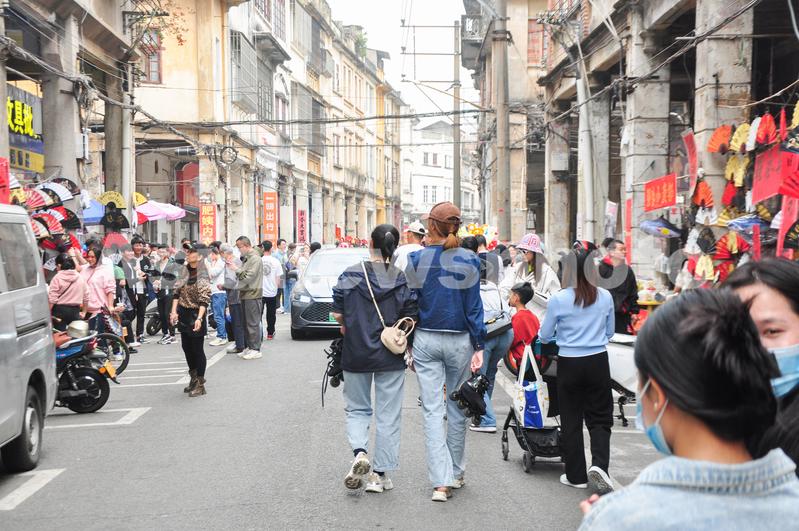2023年3月4日,广东省江门市长堤历史文化街区,拍摄到游客在《狂飙》取景点游玩。