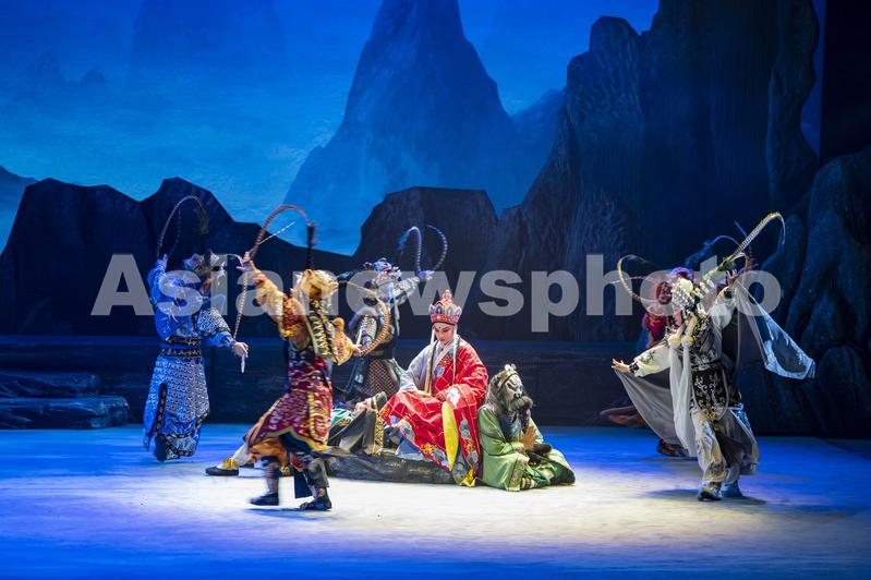 2023年3月10日,浙江省金华市中国婺剧院舞台上,国家艺术基金资助项目婺剧《三打白骨精》在进行首次演出。