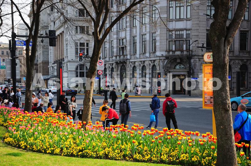 2023年3月9日,上海,郁金香绽放扮靓外滩街头