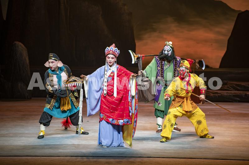 2023年3月10日,浙江省金华市中国婺剧院舞台上,国家艺术基金资助项目婺剧《三打白骨精》在进行首次演出。