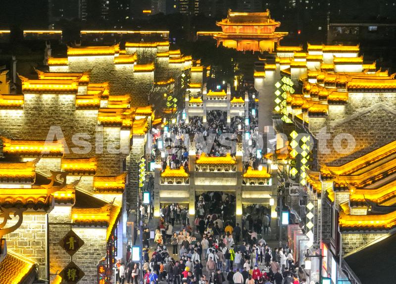 2023年3月10日,湖北省襄阳市,夜幕降临,襄阳古城华灯初上,古色古香的建筑与流光溢彩的灯光交相辉映,吸引了众多游客夜游古城。