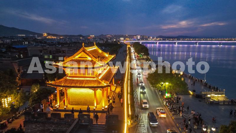 2023年3月10日,湖北省襄阳市,夜幕降临,襄阳古城华灯初上,古色古香的建筑与流光溢彩的灯光交相辉映,吸引了众多游客夜游古城。