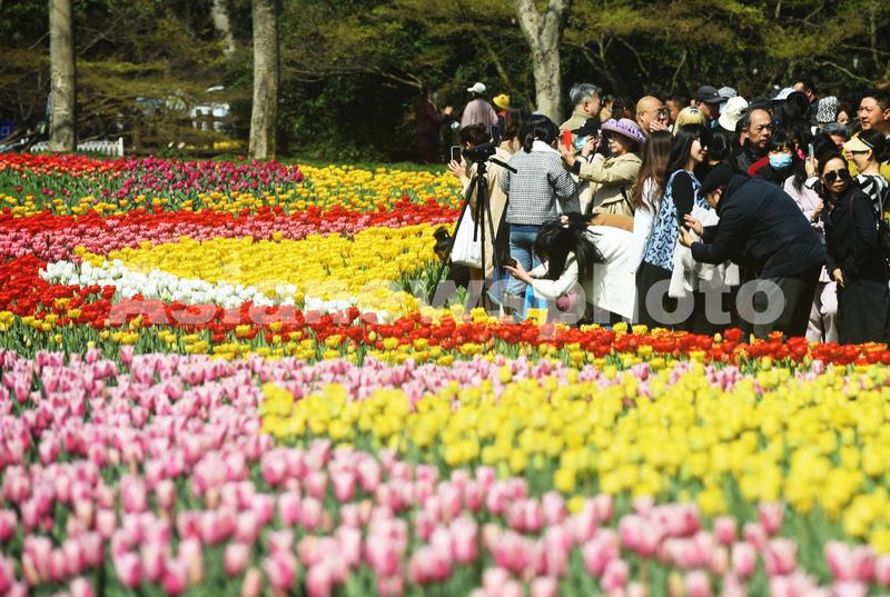 2023年3月14日,游客在杭州西湖太子湾公园观赏盛开的郁金香。 近日,杭州西湖太子湾公园盛开的郁金香吸引大批市民游客前来观赏,感受满园的美丽春景。