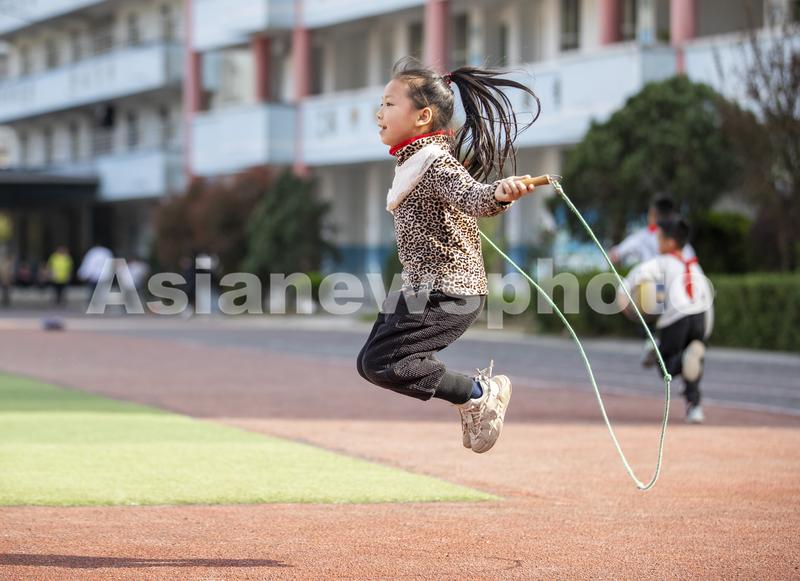 图片说明:2023年3月13日,贵州省从江县刚边壮族乡中心小学学生在体育课上跳绳。