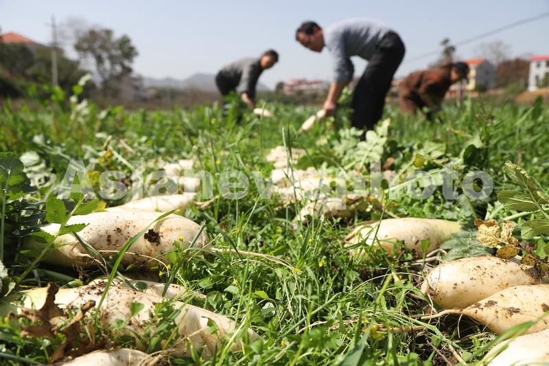 图片说明:2023年3月13日,湖南省涟源市桥头河镇新塘村,农民朋友在地里采收萝卜。