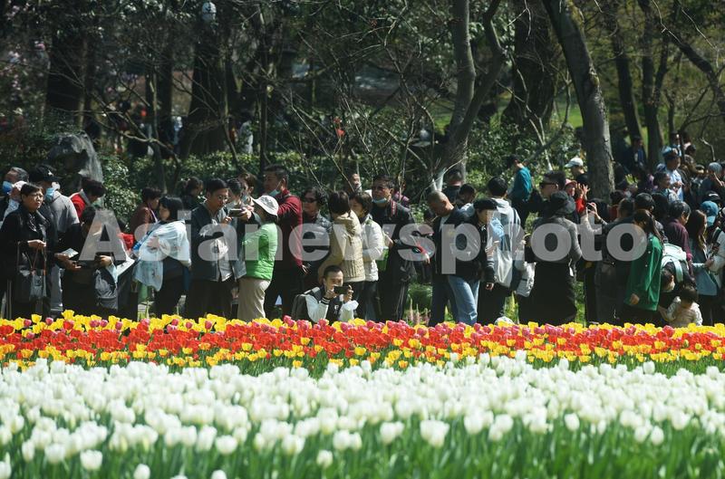 2023年3月14日,游客在杭州西湖太子湾公园观赏盛开的郁金香。 近日,杭州西湖太子湾公园盛开的郁金香吸引大批市民游客前来观赏,感受满园的美丽春景。