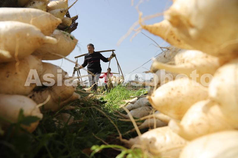 图片说明:2023年3月13日,湖南省涟源市桥头河镇新塘村,农民朋友在运送萝卜。