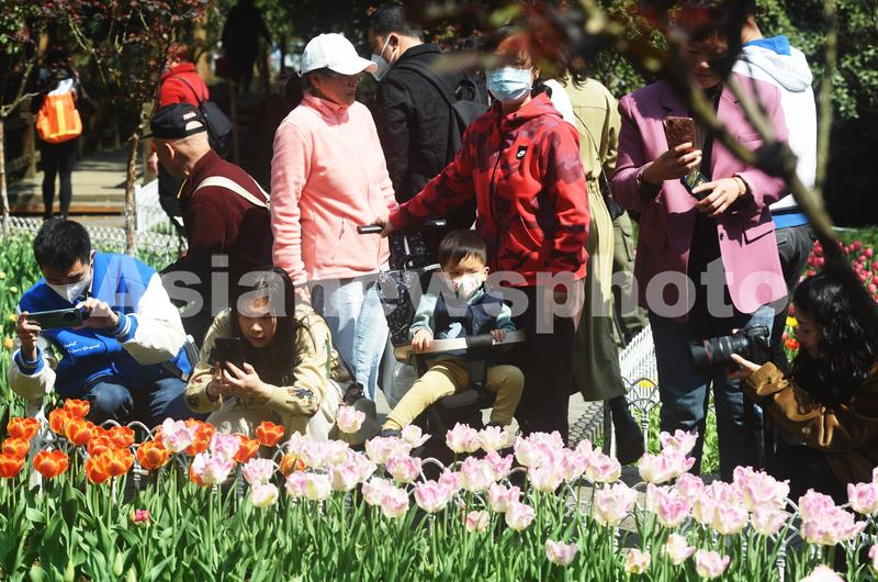 2023年3月14日,游客在杭州西湖太子湾公园观赏盛开的郁金香。 近日,杭州西湖太子湾公园盛开的郁金香吸引大批市民游客前来观赏,感受满园的美丽春景。