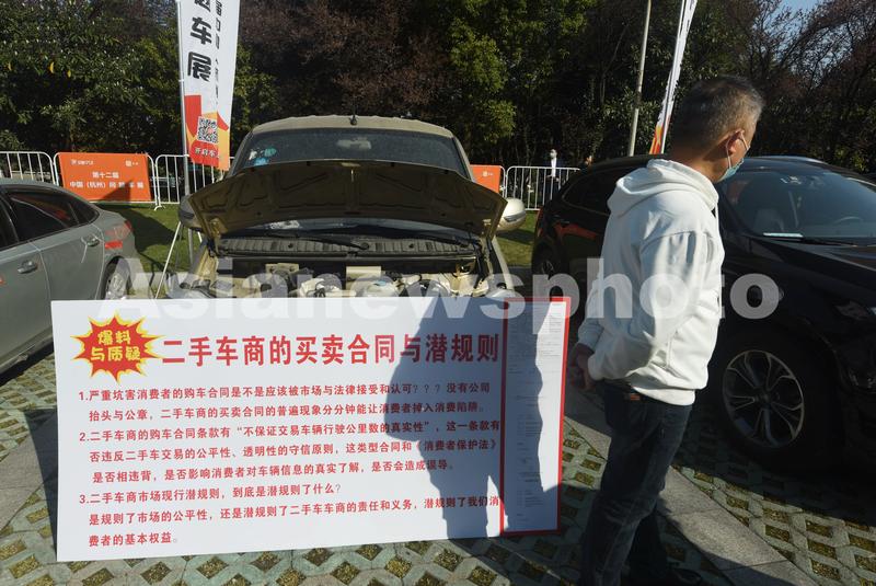 当日是315国际消费者权益日,“2023中国(杭州)问题车展”在杭州举办,来自全国各地近百辆汽车因质量问题被曝光,包括特斯拉在内的多个品牌电动汽车和奔驰、宝马、奥迪等多款知名汽车也因质量问题现身“车展”,消费者在“车展”现场共同向各大汽车生产厂家和销售商讨要说法,维护消费者合法权益。
