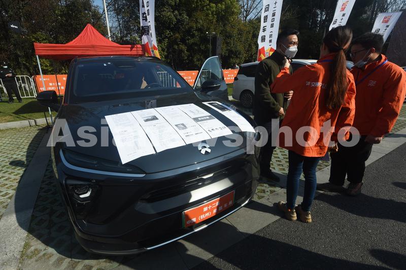 2023年3月15日,车主在2023中国(杭州)车展上向有关媒体介绍蔚来汽车的质量问题。