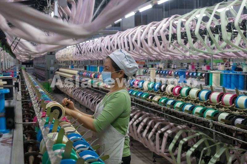 2023年3月15日,广西梧州市蒙山县一家纺织企业生产车间内,工人们在生产线上忙碌,生产车间一片繁忙。