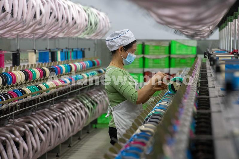 2023年3月15日,广西梧州市蒙山县一家纺织企业生产车间内,工人们在生产线上忙碌,生产车间一片繁忙。