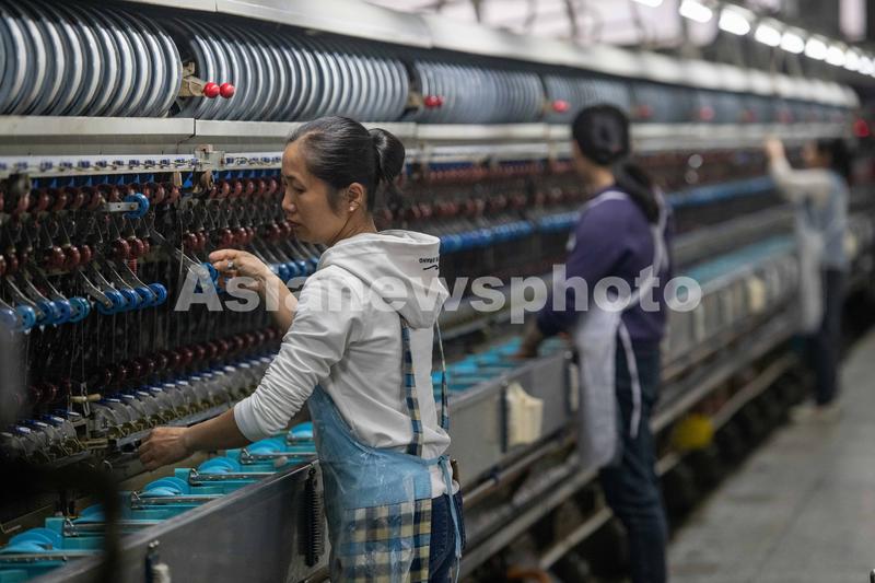 2023年3月15日,广西梧州市蒙山县一家纺织企业生产车间内,工人们在生产线上忙碌,生产车间一片繁忙。