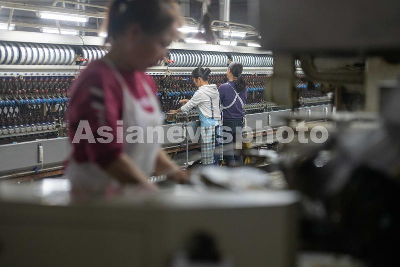 2023年3月15日,广西梧州市蒙山县一家纺织企业生产车间内,工人们在生产线上忙碌,生产车间一片繁忙。