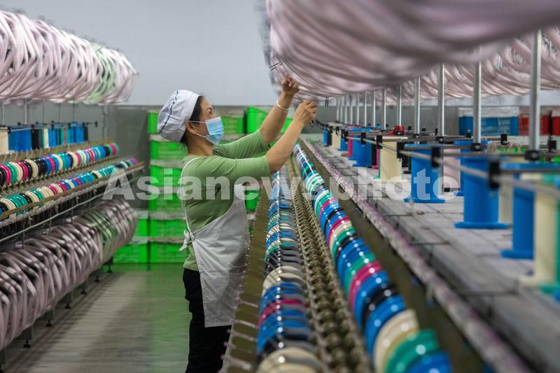 2023年3月15日,广西梧州市蒙山县一家纺织企业生产车间内,工人们在生产线上忙碌,生产车间一片繁忙。