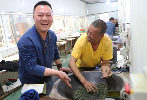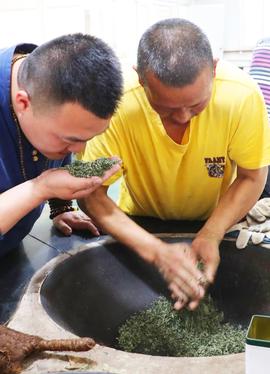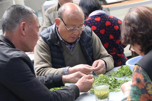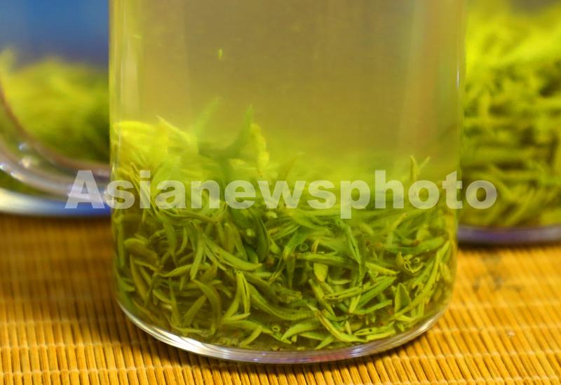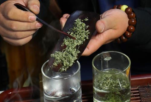 图片说明:3月16日拍摄的苏州东山镇陆巷村茶农冲泡刚炒制的明前碧螺春新茶。