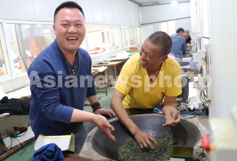 图片说明:3月16日,苏州东山镇陆巷村新老茶农边炒制边交流碧螺春新茶技艺。
