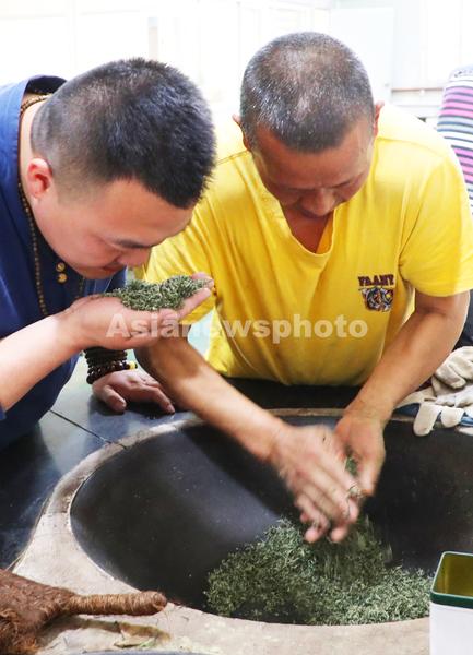 图片说明:3月16日,几名苏州市东山镇陆巷村茶农在炒制刚采摘的碧螺春新茶。