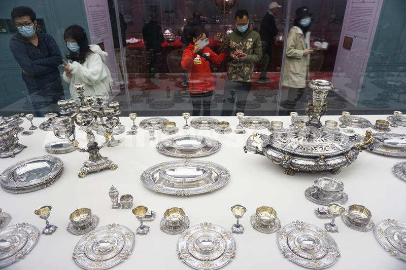 2023年3月18日,观众在“西方18-20世纪银器展”上观看各式精品银器。