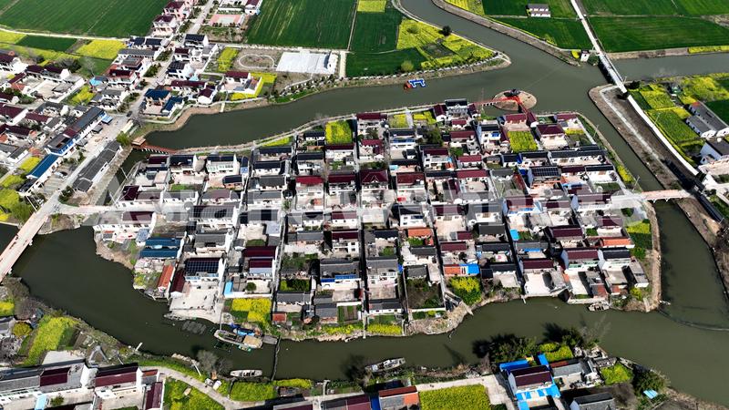 图片说明:2023年3月18日,被列入第六批中国传统村落名录名单的江苏省海安市南莫镇唐庄村春意正浓。(无人机航拍)