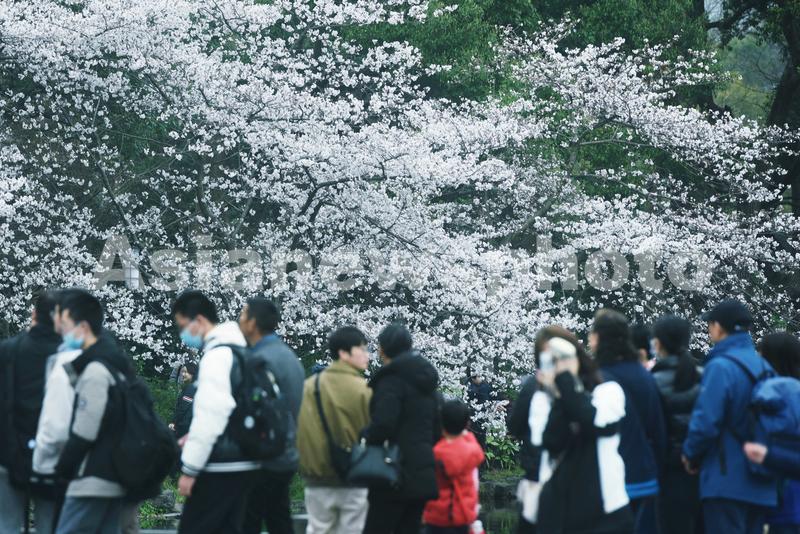 图片说明:2023年3月19日,游客观赏杭州西湖边盛开的樱花。