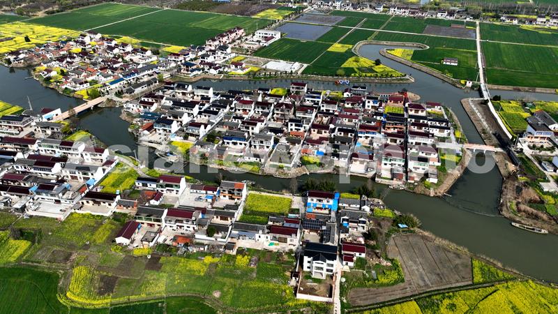 图片说明:2023年3月18日,被列入第六批中国传统村落名录名单的江苏省海安市南莫镇唐庄村春意正浓。(无人机航拍)
