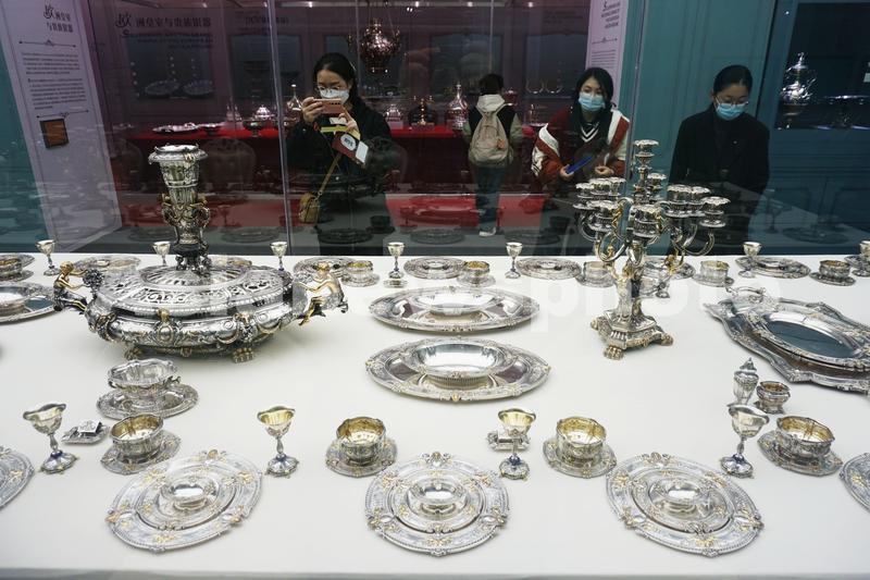 2023年3月18日,观众在“西方18-20世纪银器展”上观看各式精品银器。
