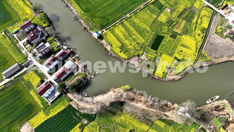 图片说明:2023年3月18日,被列入第六批中国传统村落名录名单的江苏省海安市南莫镇唐庄村春意正浓。(无人机航拍)